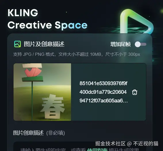 我这里使用的是可灵,把图上传上去: