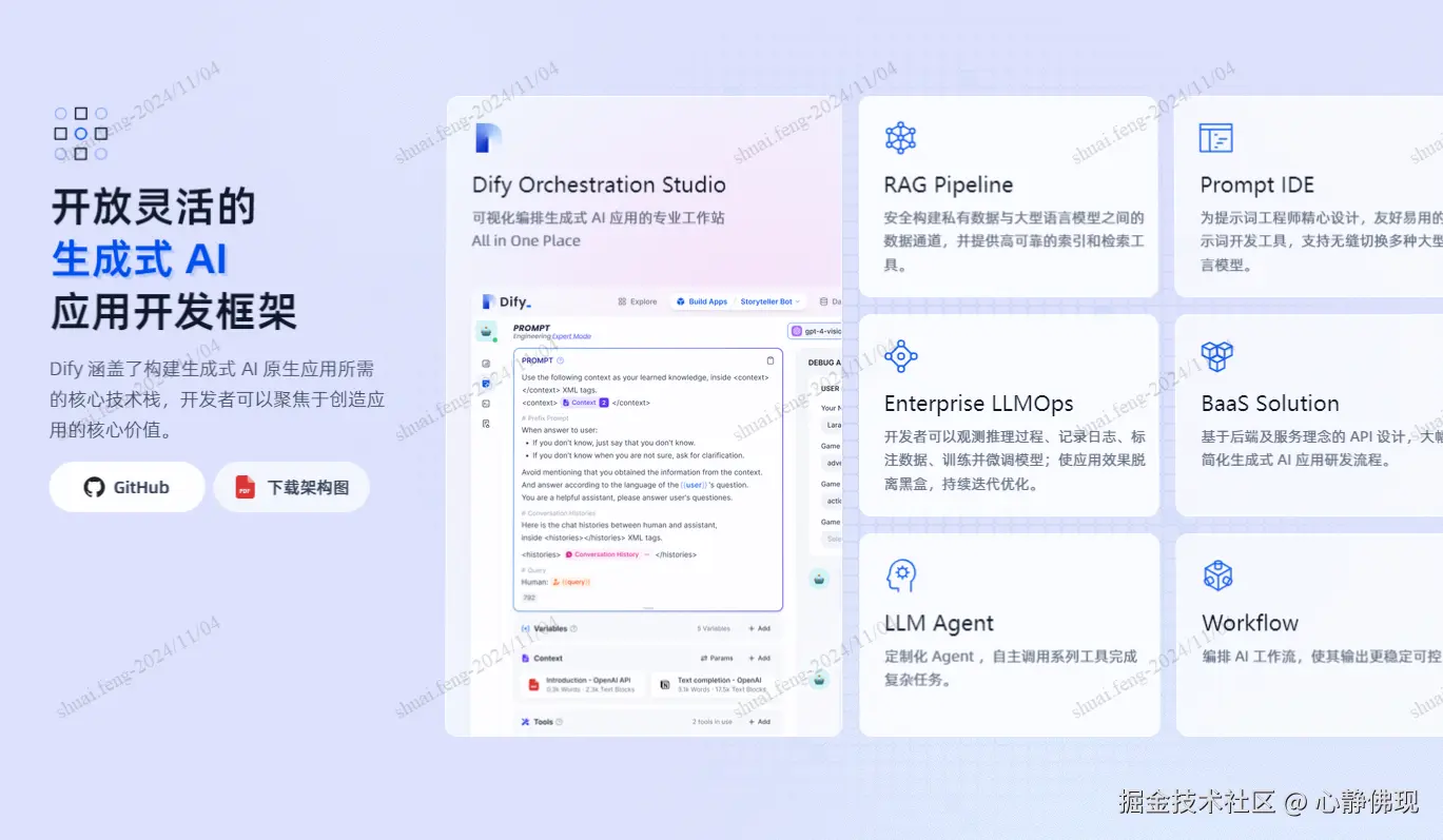 昨日,Dify 更新到 v0.10.2 ,包括新功能、增强和修复以及升级指南等方面。新功能有在工作流中加入 Markdown 按钮、支持 JSON 类型的文档提取器节点、集成 Stable--Diffusion 3.5 的文本转图像功能、在工作流中提供向量器支持等。增强和修复涉及 API 文档升级、修复 LLM 节点流输出问题、更新工作流代码生成器、增强工作流中的提示处理、改进 HTTP 请求中的文件处理等。升级指南包括 Docker 部署和源代码部署两种方式。此外,还介绍了新的贡献者和完整的更新日志。