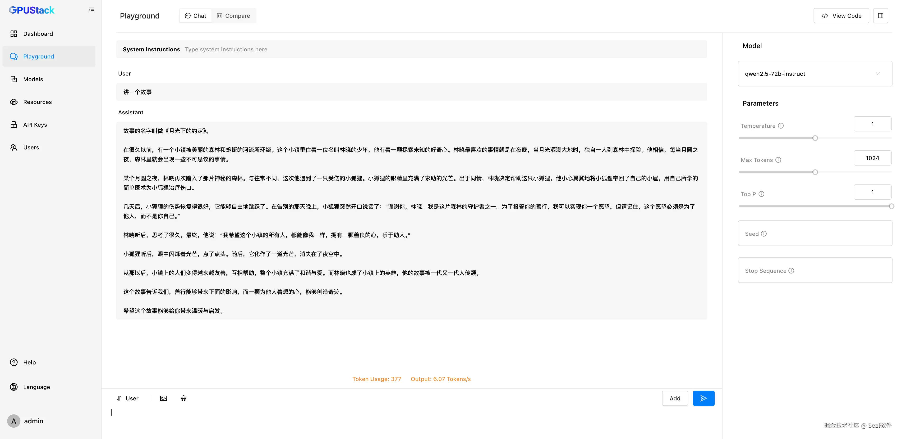 以上为使用 GPUStack 在昇腾 910B 上运行 Qwen 2.5 的操作实践,项目的开源地址为:github.com/gpustack/gp…。