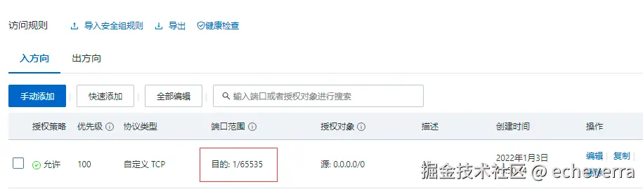 我们直接开放所有端口1-65535,阿里云服务器在安全组中配置规则。