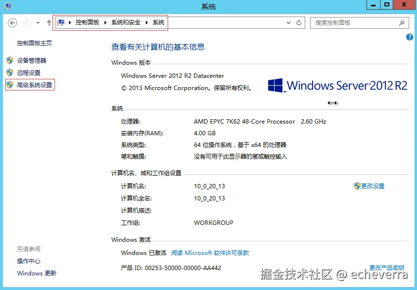找到控制面板-系统和安全-系统,点击左侧高级系统设置。