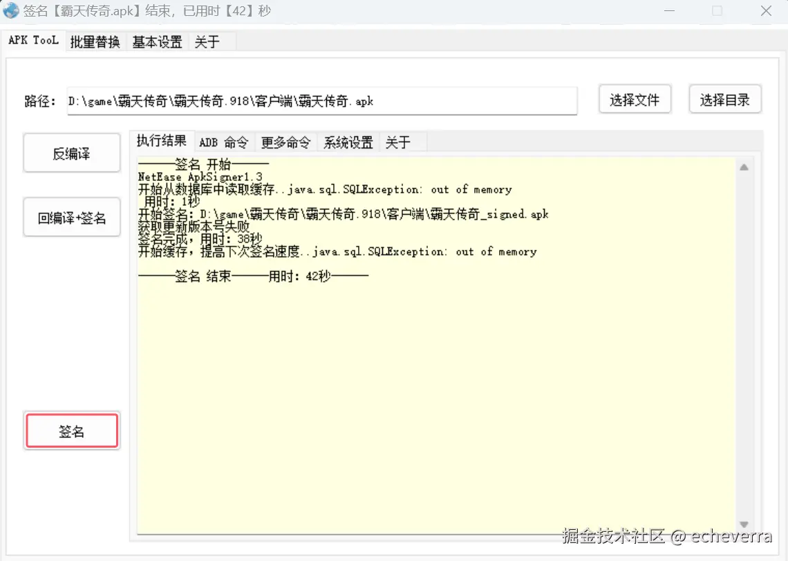 替换后使用签名工具ApkTool选择修改好的APK文件进行签名即可。