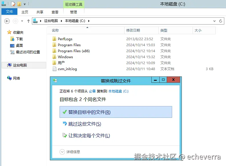 再在该目录下找到windows目录,整个复制windows到 C 盘并替换。