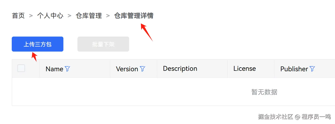 进入到仓库管理后台,点击管理三方包: