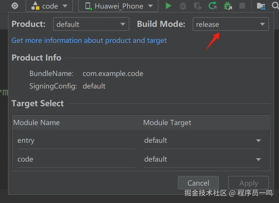 动态共享包 HSP 包不能直接发布在ohpm-repo内,需要先转化为 .tgz 包,点击工具栏图标将编译模式切换成release模式。