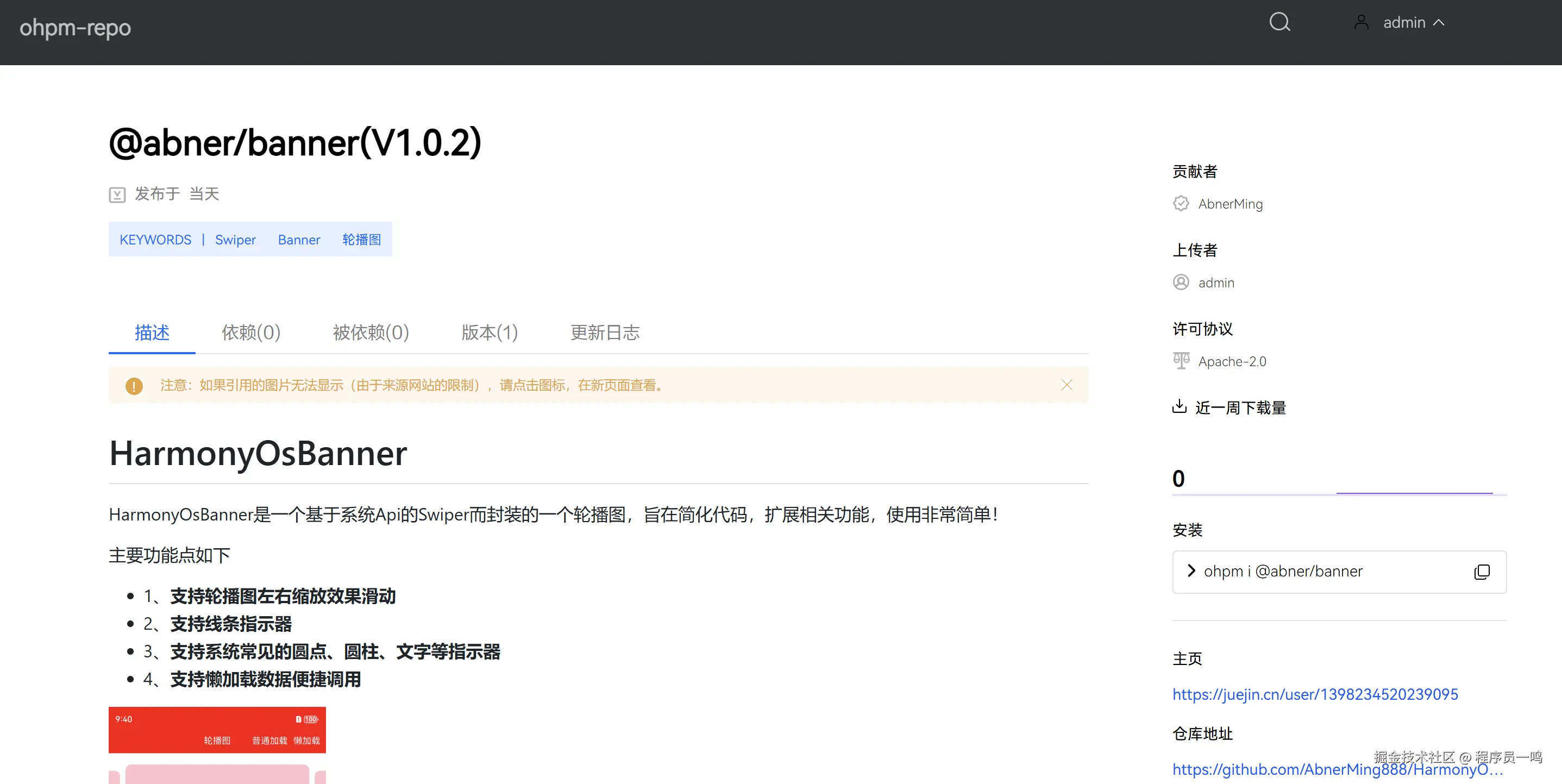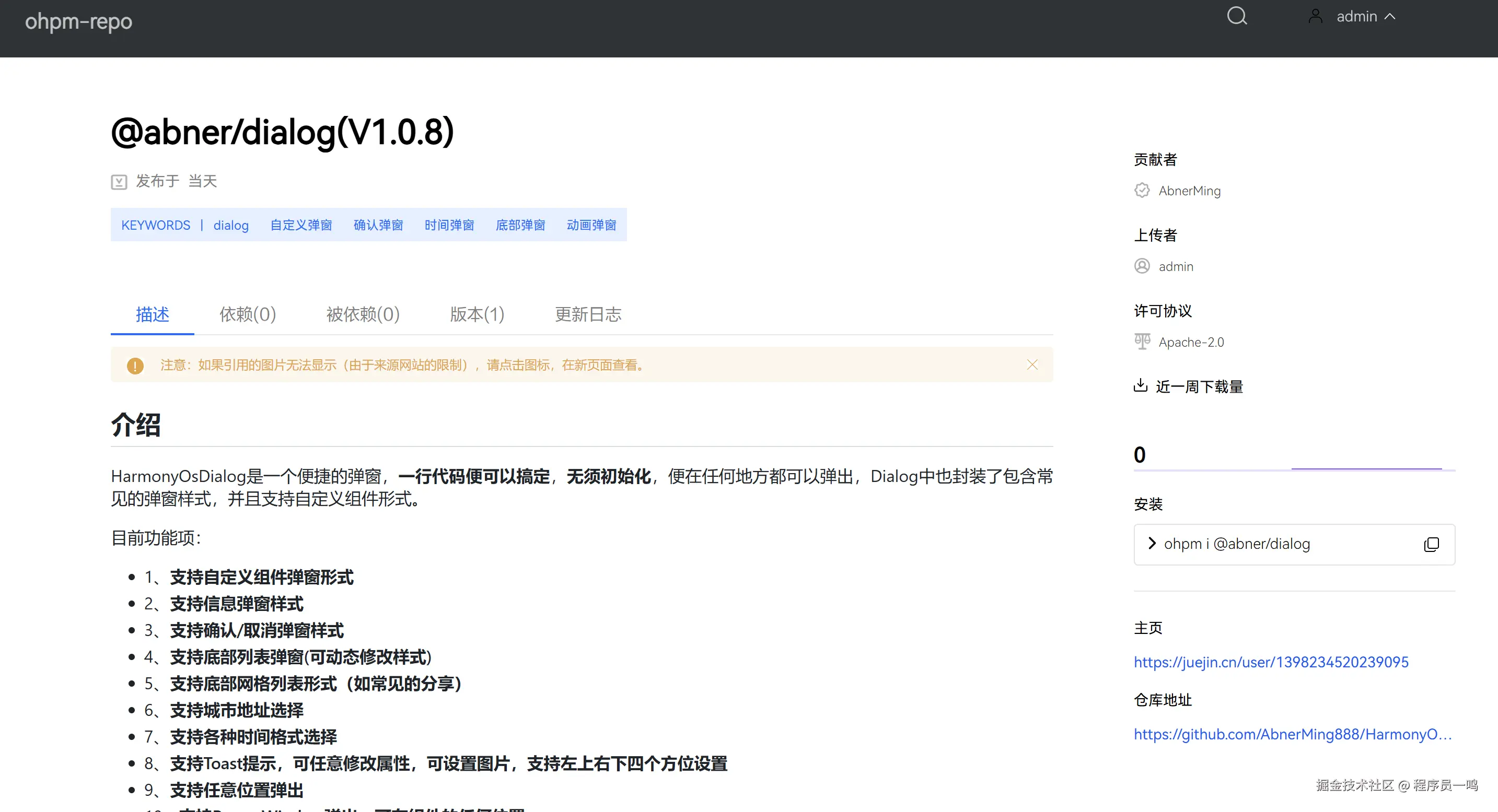 详情页面就是文档介绍页面,这里主要是我们研发的共享包使用方式,所以,再上传一个共享包的时候,一定要文档清晰。