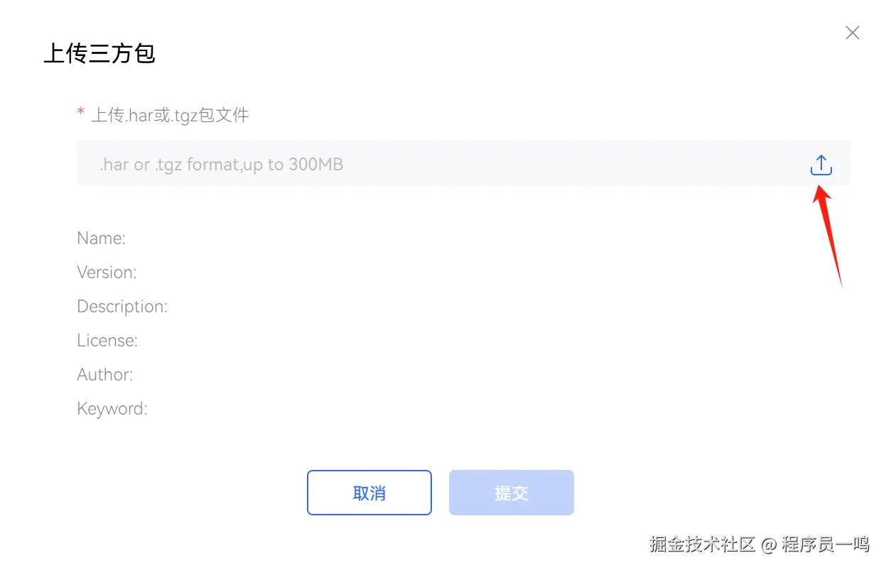 点击上传三方包: