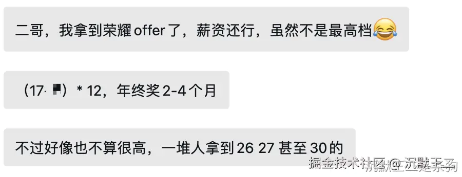 整体上来说,荣耀和去年的情况也是差不多,没有变化特别大,星球里之前也有小伙伴拿到荣耀的 offer。