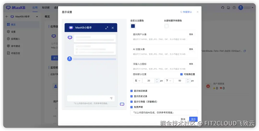 ▲图8 MaxKB应用概览中新增“显示设置”功能(X-Pack)