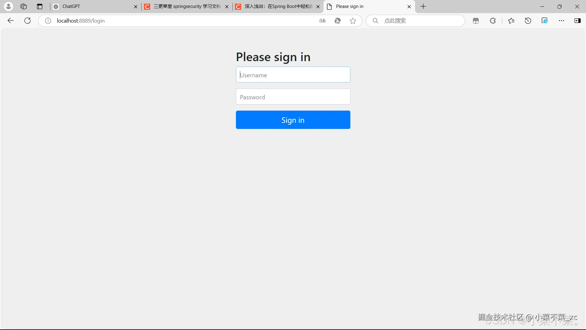 添加完依赖启动项目,继续访问localhost:8889/hello,界面跳转至SpringSecurity的默认登录界面