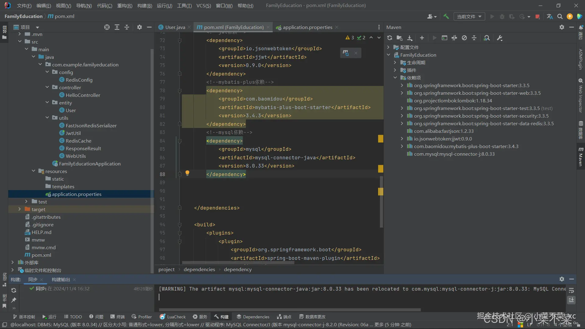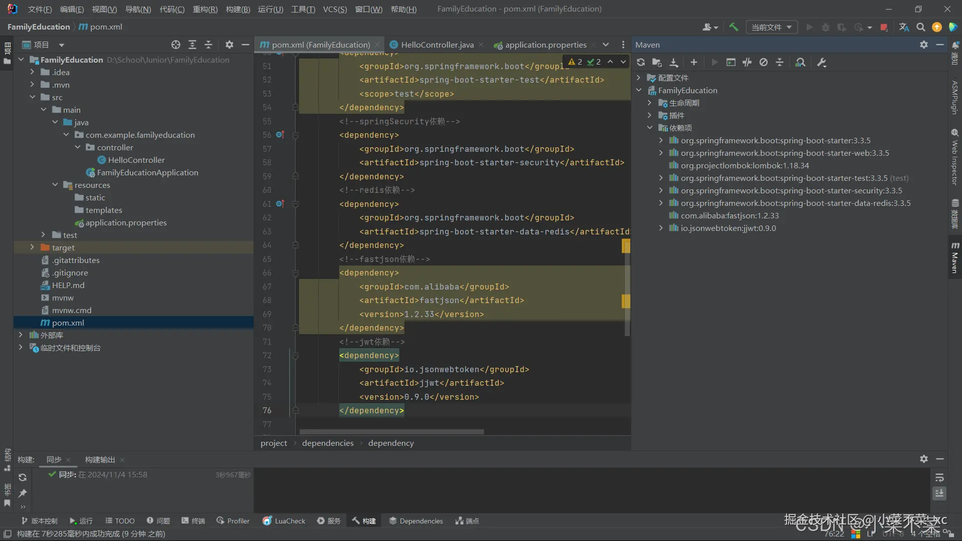 我们先添加一下redis、fastjson、jwt的依赖同时去右侧maven进行检查