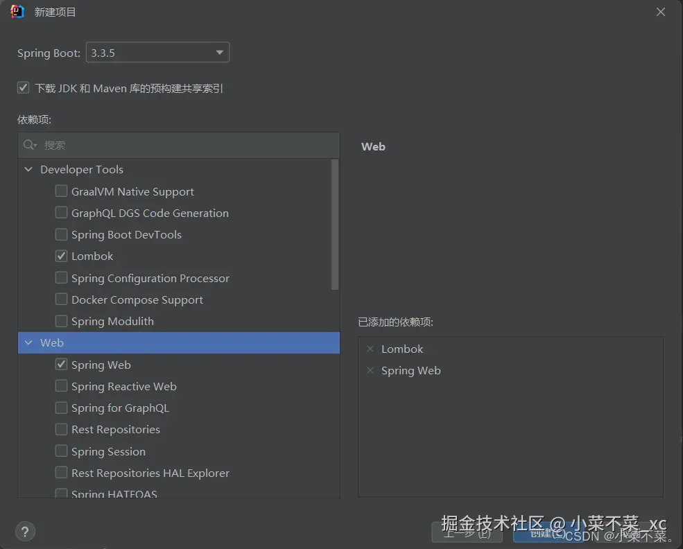 添加几个普通的依赖,后面其他依赖可以在pom.xml中进行添加