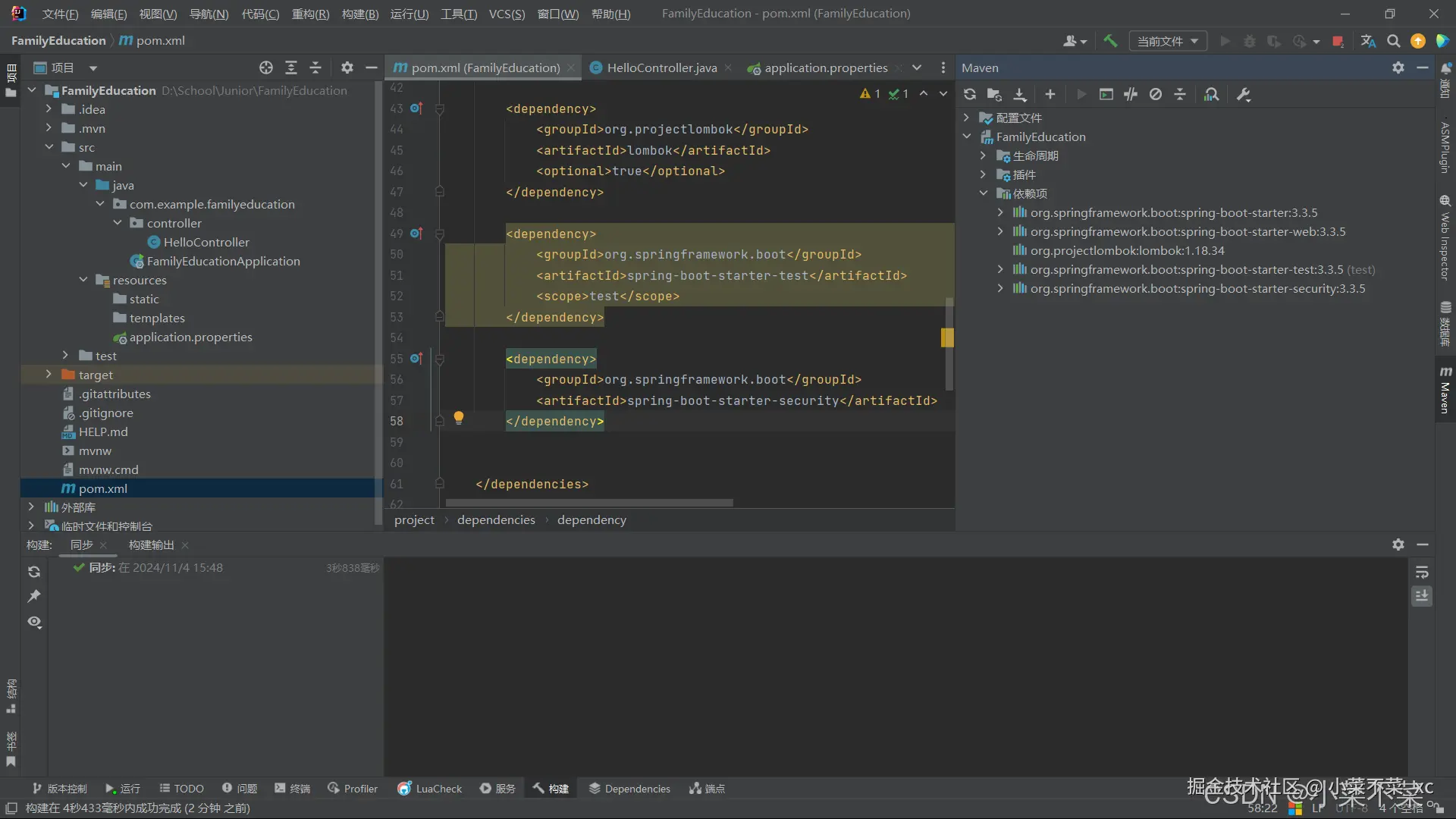 我们先在pom.xml文件中添加上依赖,同时我们可以去右侧maven中进行检查依赖是否添加成功