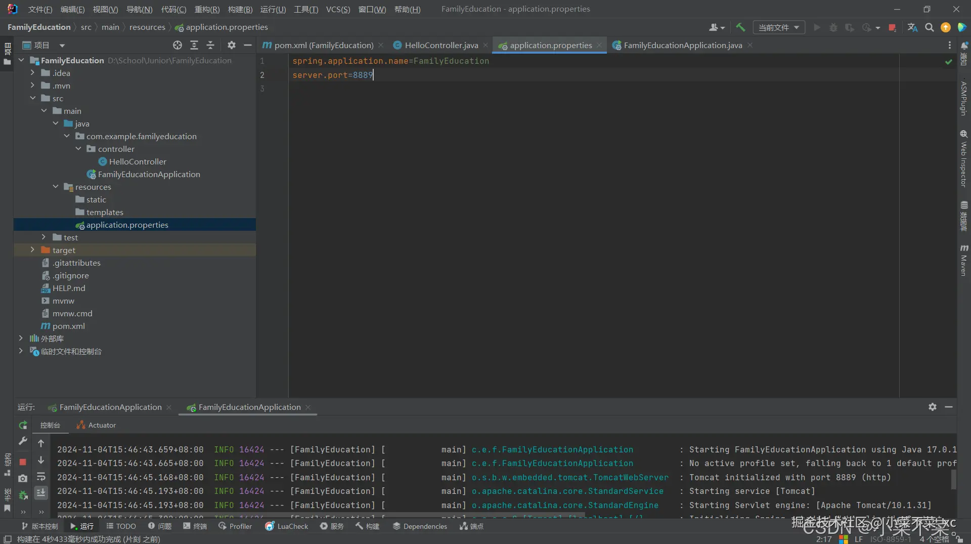 好,现在运行项目,并在浏览器中输入localhost:8889/hello进行访问,输出hello说明SpringBoot项目创建成功,没有什么问题