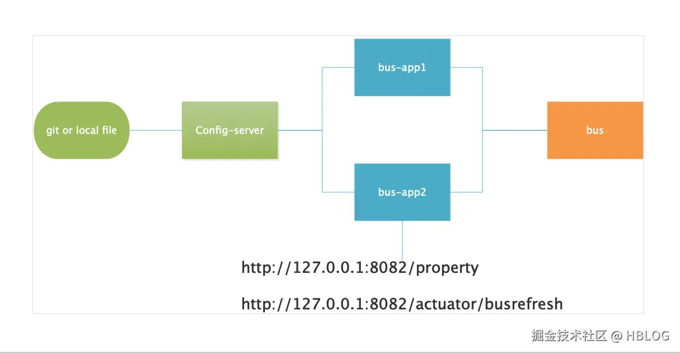 ConfigClient实例都监听MQ中同一个topic(默认是springCloudBus)。当一个服务刷新数据的时候,它会把这个信息放入到Topic中,这样其它监听同一Topic的服务就能得到通知,然后去更新自身的配置