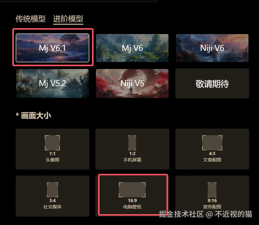 我们打开网站后,选择 AI创作,记得选模型,比例 16:9