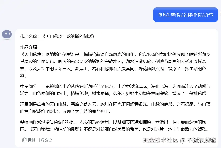 由于作品需要名称和介绍,当然,这可难不倒 AI,我们让 Kimi 生成即可: