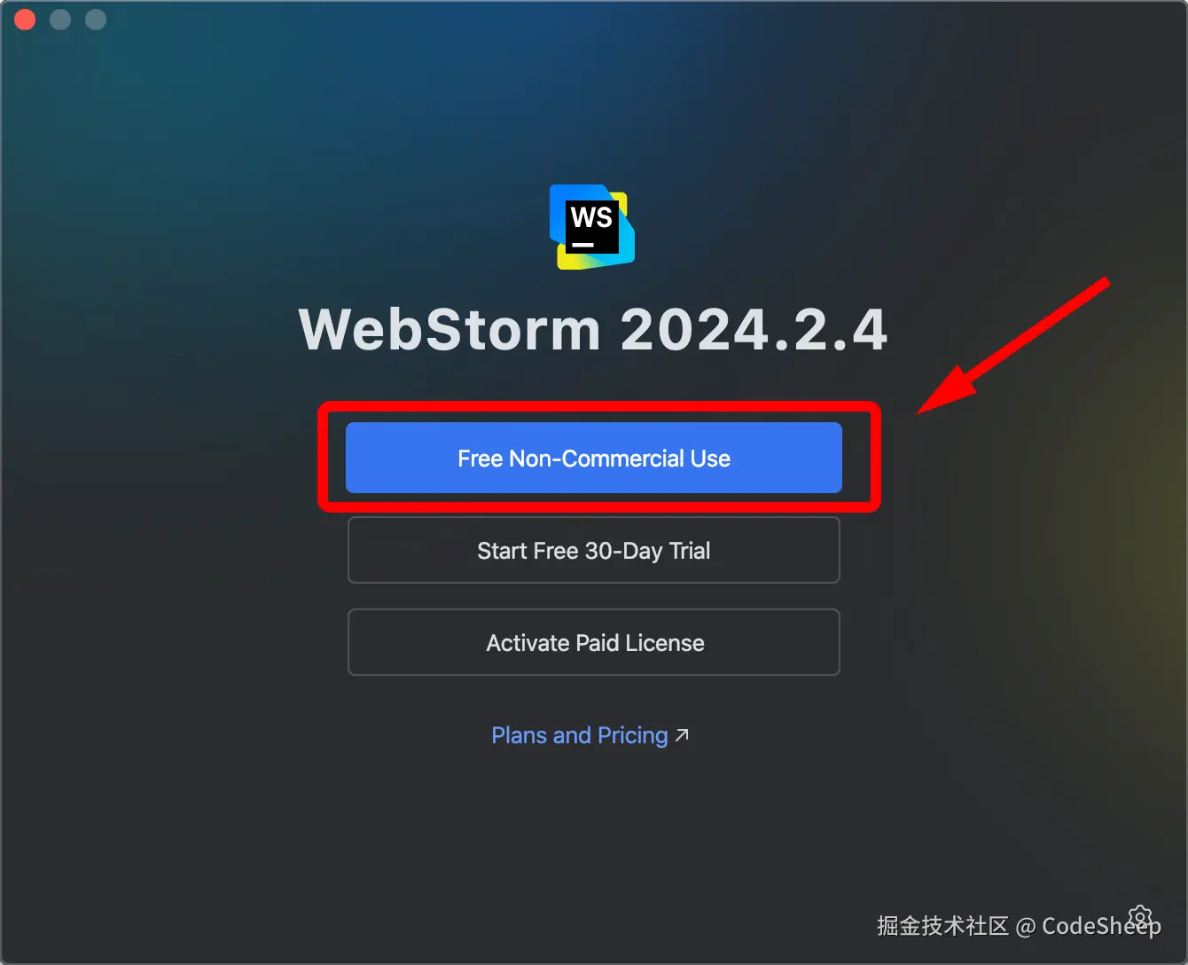安装完成并运行IDE,打开会看到一个许可证对话框。在这个对话框中,用户可以选择“Non-Commercial Use”(非商业用途)选项。