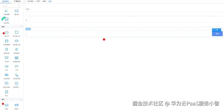 (2)拖入2个输入框组件和1个按钮组件。