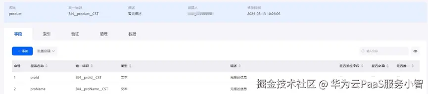 2.新建一个对象(如product),并为对象添加字段。