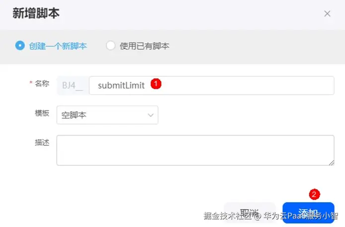 (2)新建一个空白的脚本(如submitLimit),单击“添加”。