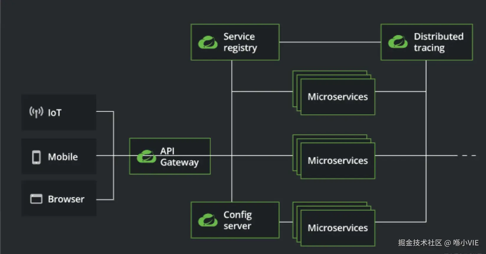 Spring Cloud 是分布式微服务架构的一站式解决方案,它提供了一套简单易用的编程模型,使我们能在 Spring Boot 的基础上轻松地实现微服务系统的构建。 Spring Cloud 提供以微服务为核心的分布式系统构建标准。