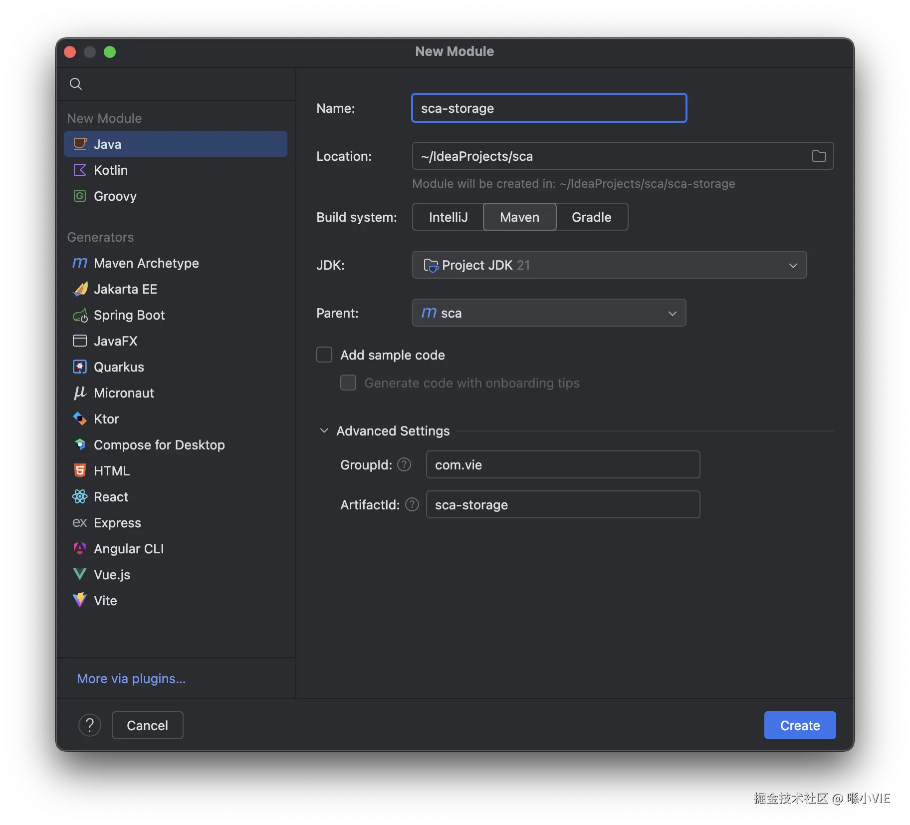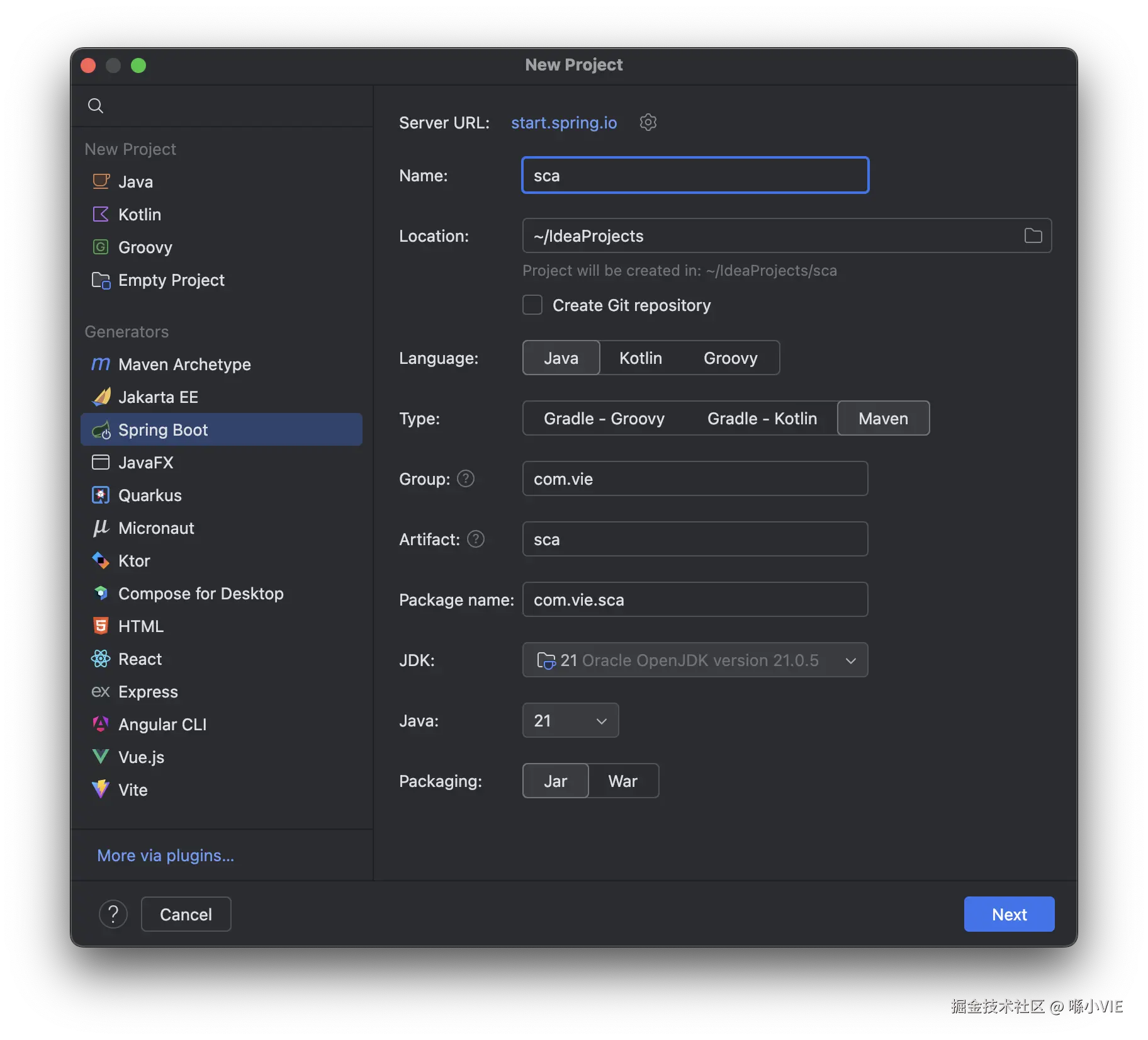 无论是 Spring Cloud 还是 Spring Cloud Alibaba 它们都是基于 Spring Boot 的分布式系统开发框架,所以我们的架构工程直接通过创建Spring Boot项目开始,项目名称是sca(即 Spring Cloud Alibaba 的首字母缩写)。
