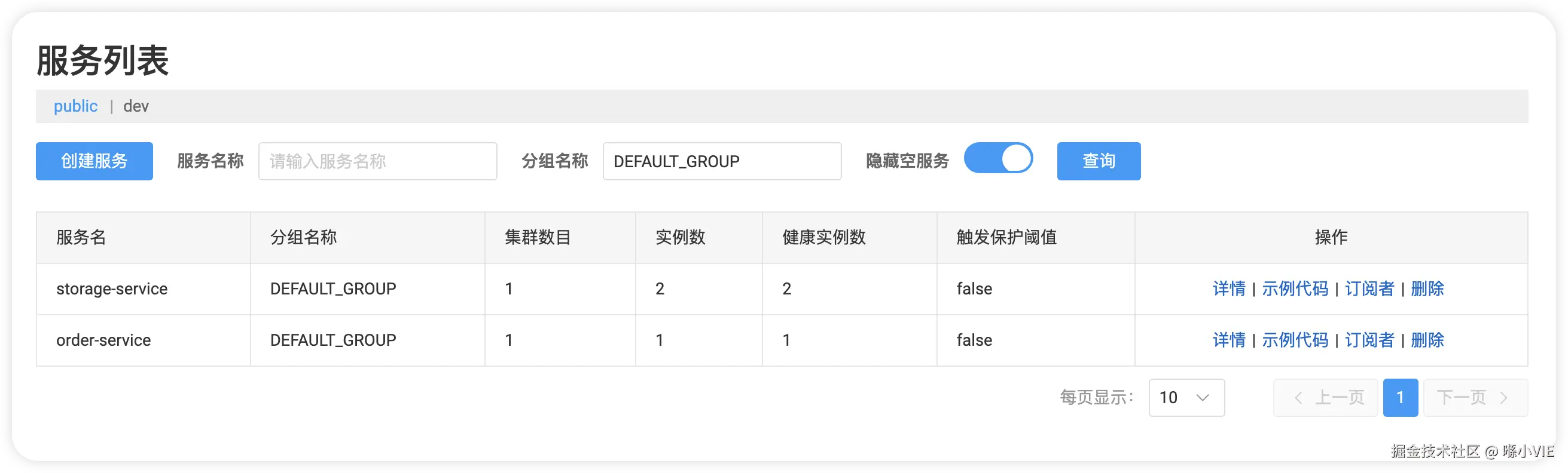 之后我们分别启动一个order-service和两个storage-service,然后在 Nacos 控制台中查看服务注册情况,如下就代表服务成功注册了。