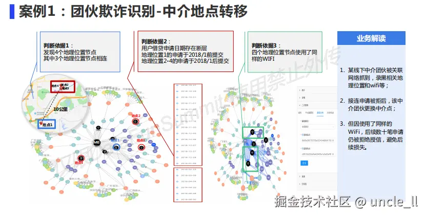 - 地理位置节点:识别出四个与借贷申请相关的不同地理位置节点。