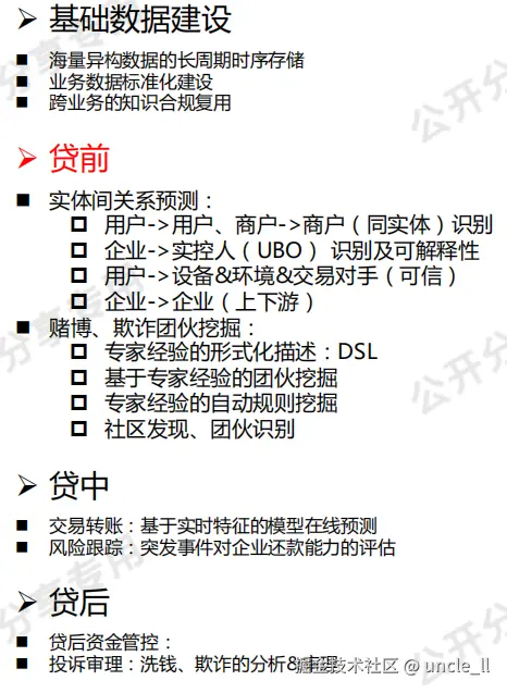 - 贷中风险监控:实时评估交易风险,监控资金流向。