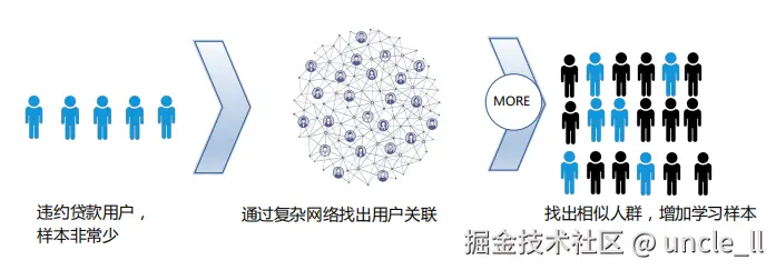 违约贷款用户的数量通常较少,导致学习样本不足,影响模型的准确性。通过构建用户间的复杂网络,图计算技术能够揭示用户之间的潜在关联,并找出与违约用户特征相似的群体,从而扩展学习样本的数量。这种增强策略不仅提升了模型的训练效率,也显著提高了预测效果。