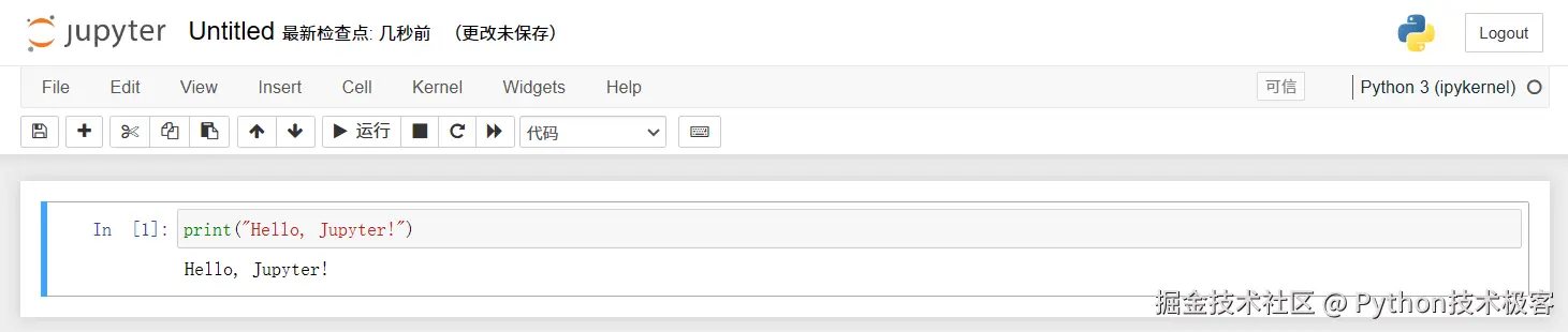安装完成后,我们可以通过命令行启动 Jupyter Notebook: