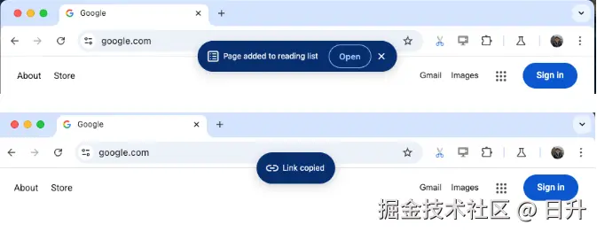 Chrome 130 引入了一种新的 Toast 样式,用于在用户操作后提供视觉确认,或快速提供后续操作的途径。