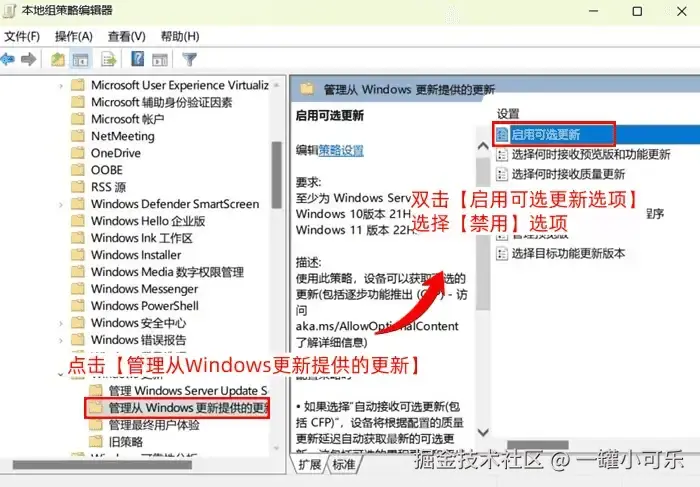 具体的操作流程是:打开电脑的服务运行窗口,在【计算机配置】中找到【管理模板】板块,选择【Windows组件】-【Windows更新】,在其下列选项中点击 【管理从Windows更新提供的更新】 ,然后双击【启用可选更新选项】,选择【已禁用】选项即可。
