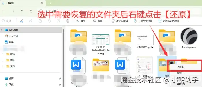 误删文件夹恢复方法一:使用回收站还原