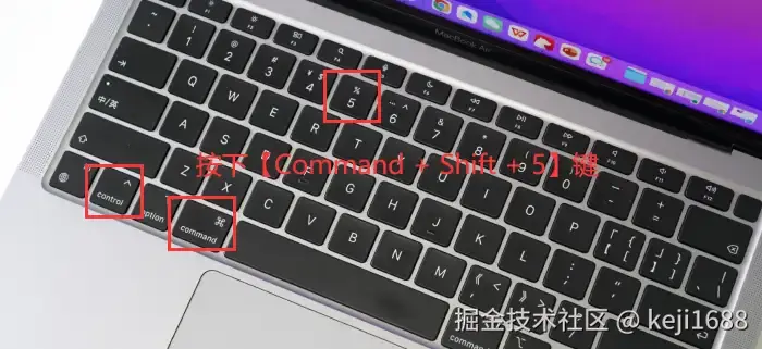 步骤1:在Mac电脑键盘上按下 【Command+Shift+5】 ,即可快速打开截屏工具栏。