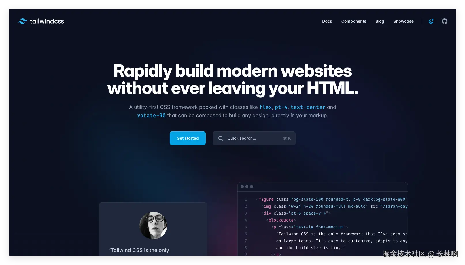 - 实用优先的设计:Tailwind 提供了大量的低级 CSS 工具类,使开发者可以直接在 HTML 中组合使用这些类来构建设计,而无需离开标记。