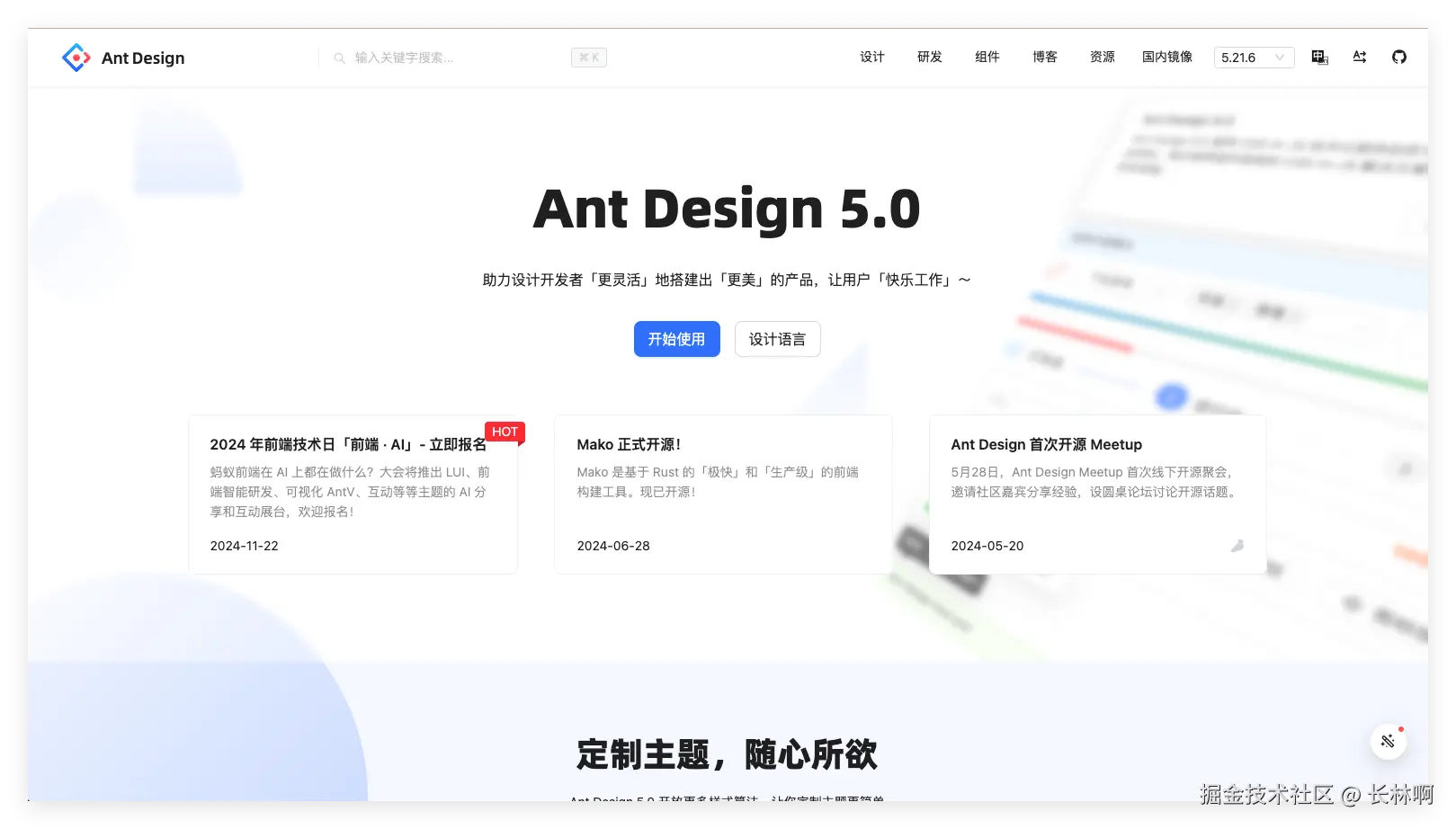 Ant Design 是基于 Ant Design 设计体系的 React UI 组件库,适合企业级中后台产品与前台桌面网站。