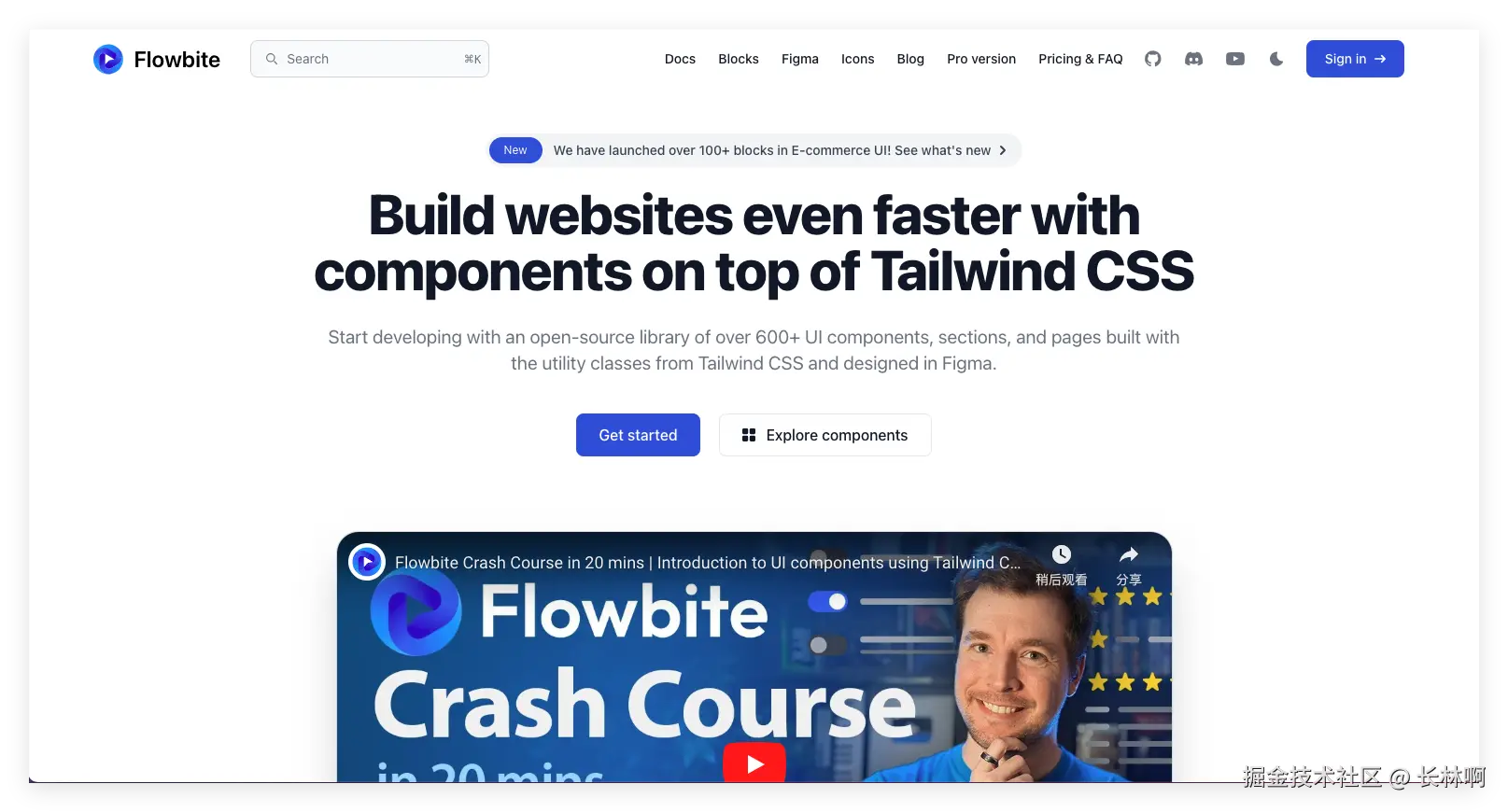 Flowbite 是一个开源组件库,使用 Tailwind CSS 实用程序类来创建组件。它提供 600 多个组件和交互元素,以及暗黑模式支持和 Figma 设计系统。它支持多种现代前端开发框架,包括 React、Vue、Svelte、Laravel 和 Rails。Flowbite 的专业版现已推出,其中包含基于 Tailwind CSS 实用程序类的 Figma 设计系统以及数百个开发的页面和组件,例如应用程序 UI、营销 UI 和电子商务布局。
