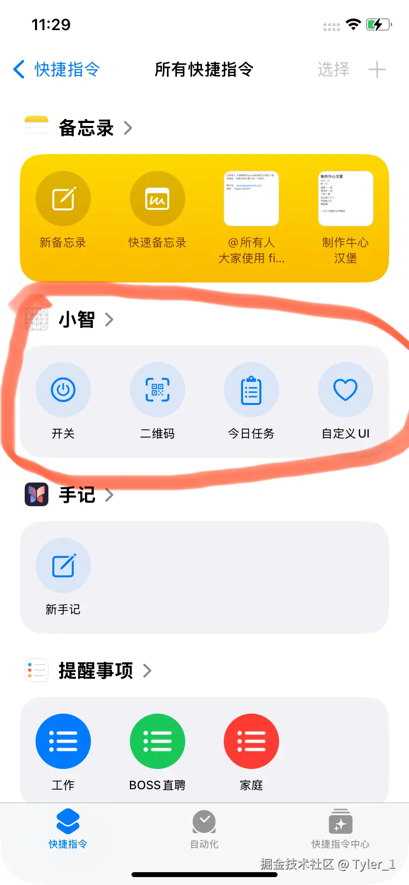 通过快捷指令 App 中的按钮icon 手动点击执行;