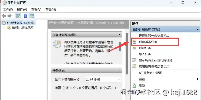 步骤1:在Windows搜索栏中输入 【任务计划程序】 并打开,点击 【创建基本任务】 。