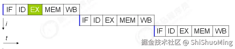 现代 CPU 支持多级指令流水线,例如支持同时执行 取指令 - 指令译码 - 执行指令 - 内存访问 - 数据写回 的处理器,就可以称之为五级指令流水线。这时 CPU 可以在一个时钟周期内,同时运行五条指令的不同阶段(相当于一条执行时间最长的复杂指令),IPC = 1,本质上,流水线技术并不能缩短单条指令的执行时间,但它变相地提高了指令地吞吐率。