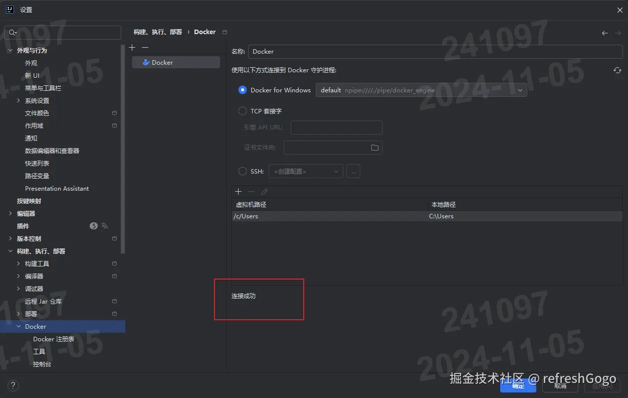 配置本机docker地址,路径 设置-->构建、执行、部署---->docker