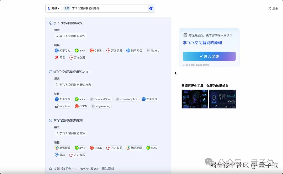 然后它就 “唰唰唰” 地开始在网上找资源了,包括公众号文章、arXiv 论文和权威期刊等等: