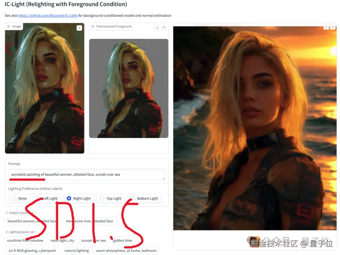 IC-Light 是此前张吕敏开发的图像处理工具,可以通过 AI 技术精确控制图像中的光照效果。