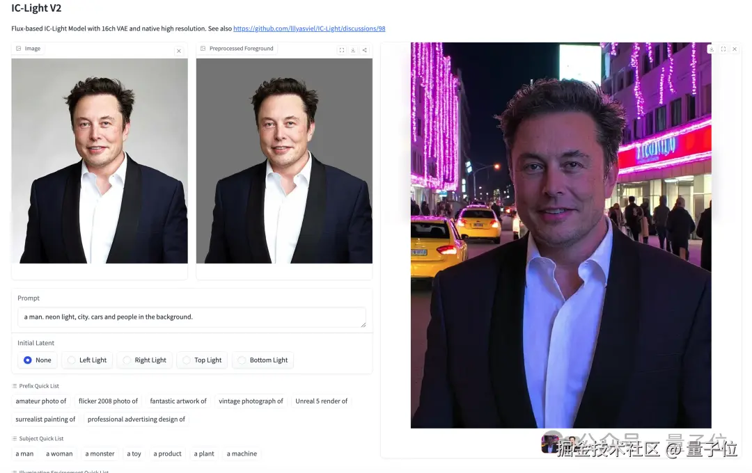 目前,IC-Light V2 已经上线 HuggingFace,可以在线体验。