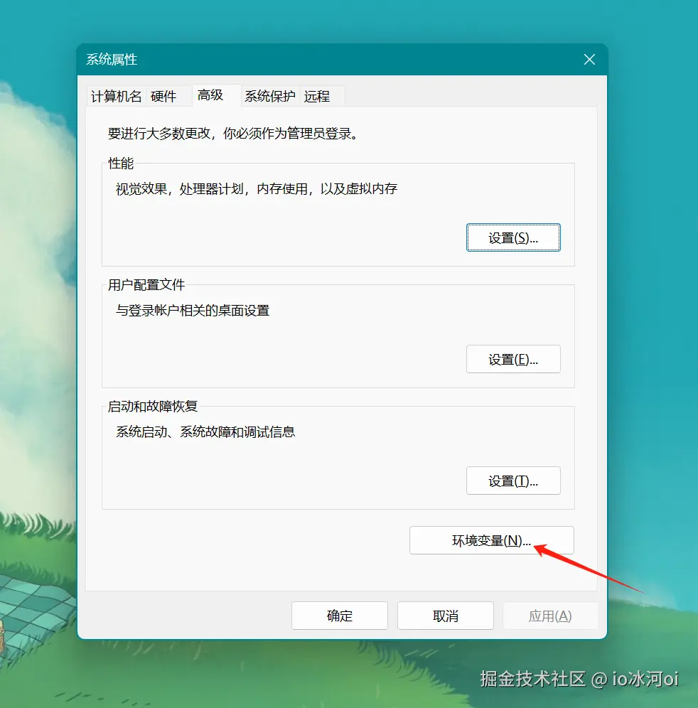 本教程只提供了Windows 11环境下编辑环境变量,如下: