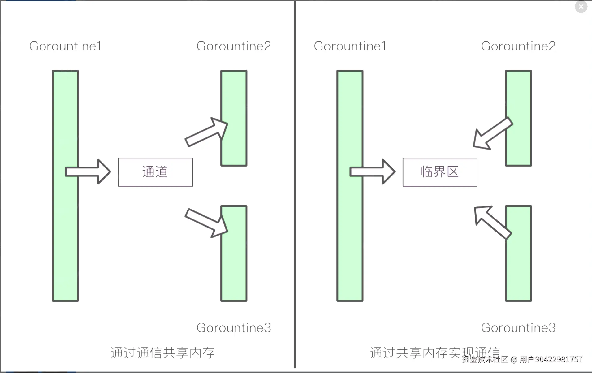 Go语言通过引入协程(goroutine)和通道(channel)来解决这些问题,其核心思想是“通过通信共享内存”。具体来说,Go鼓励开发者通过通道来传递数据,而不是直接访问共享内存。这种方式有以下几个优点: