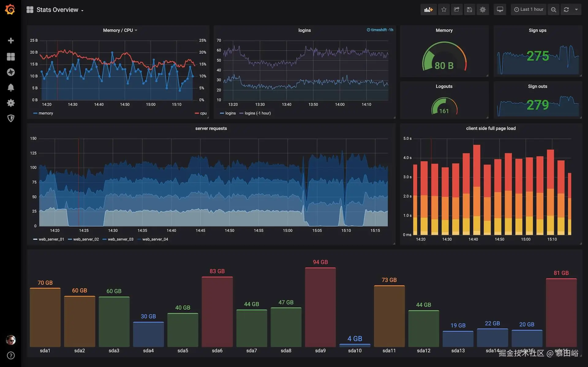 - 优点:开源免费,功能灵活,支持多种数据源和丰富的插件,Grafana 的数据可视化能力极强。