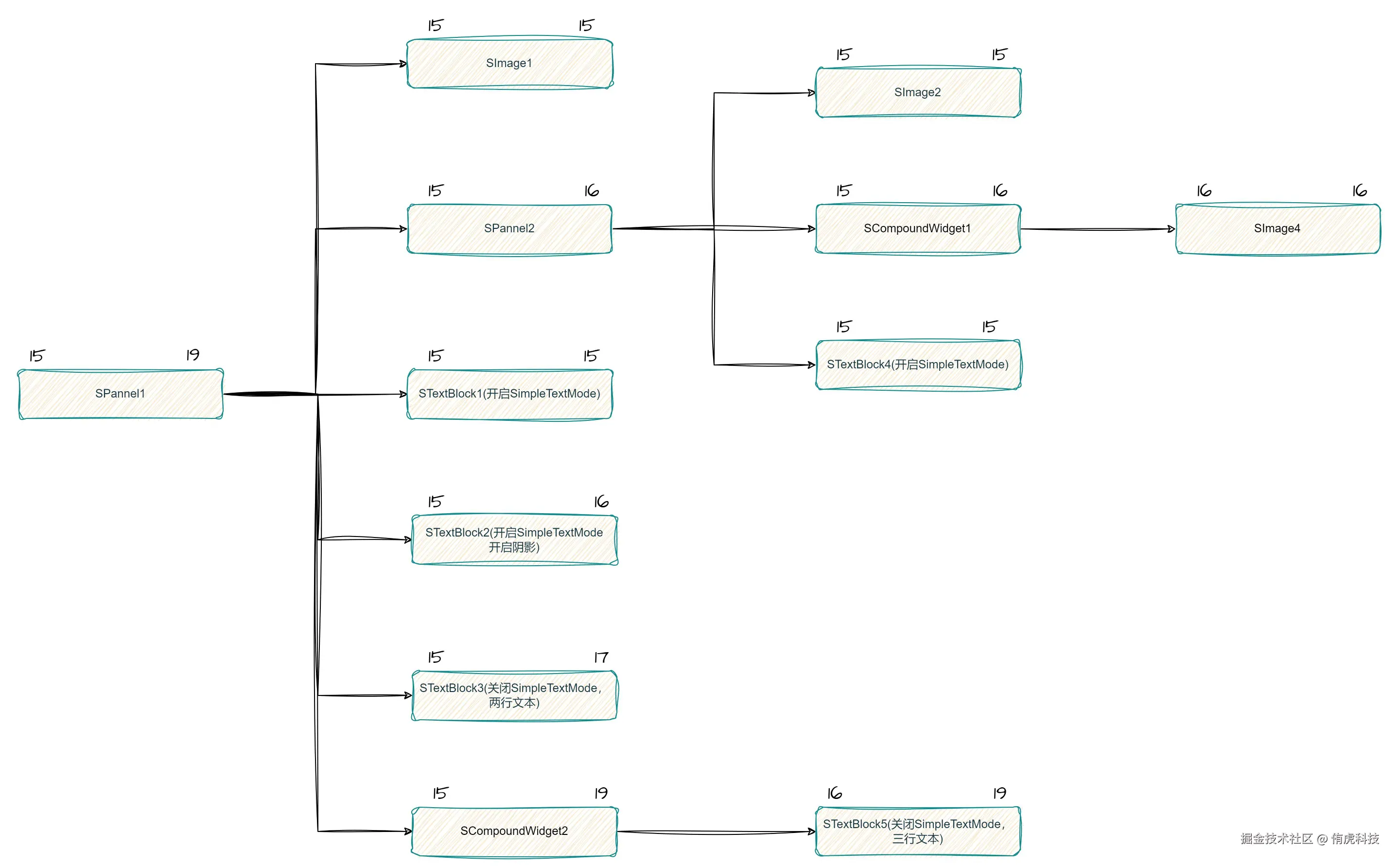 到这里了你应该对于LayerID计算流程有一定的了解,下面用一些更加实际的内容帮助你理解。下图是一个比较简单的控件树,左侧是输入该控件的LayerID,右侧是该控件最后返回的LayerID,如下图所示: